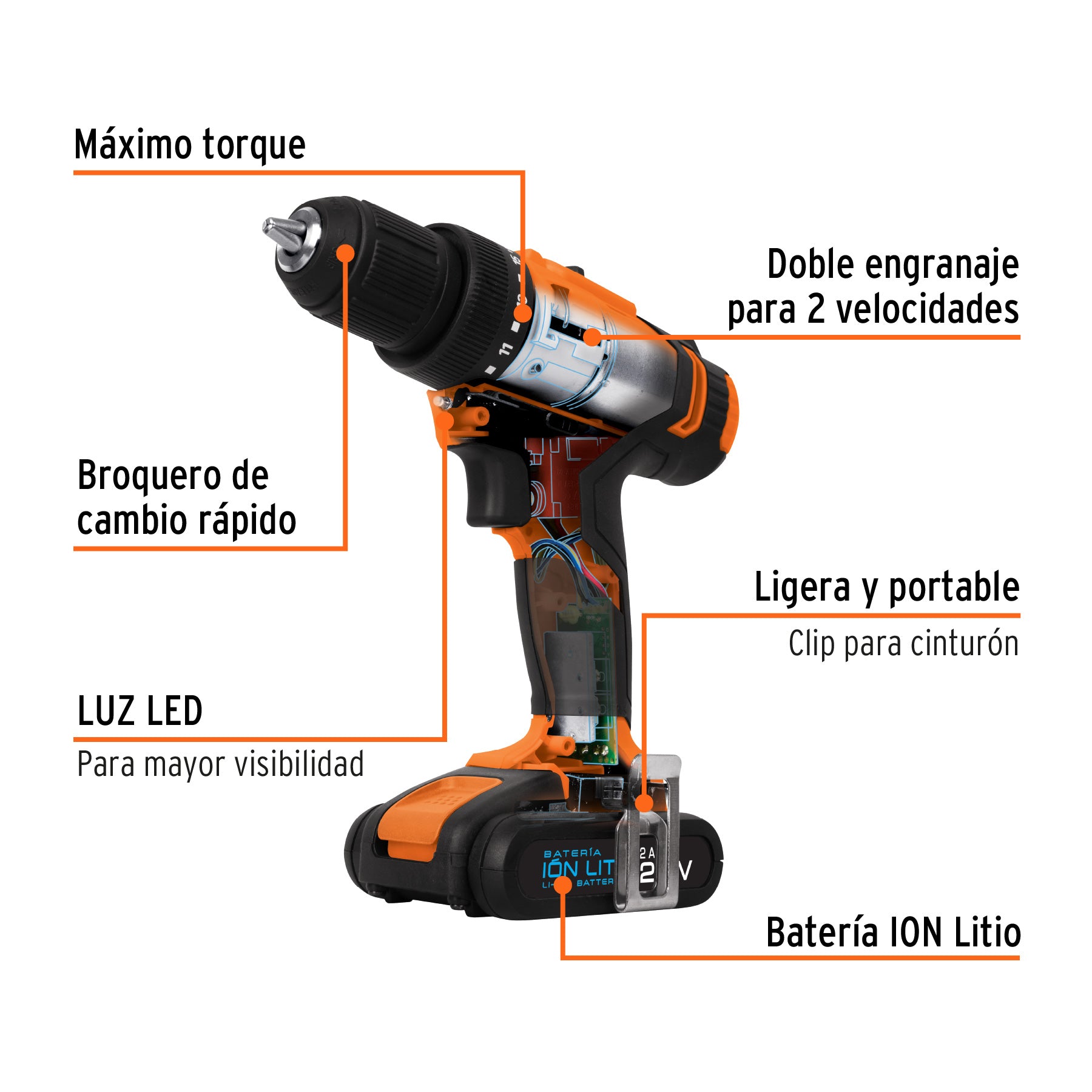 Taladro inalámbrico, batería ion Litio 20 V, 1/2", (220 V)